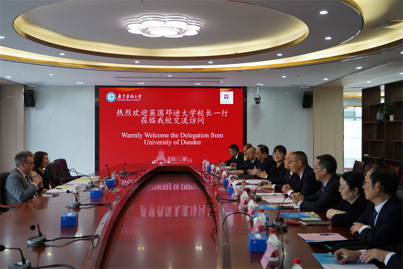 4月16日,英国邓迪大学校长Iain Gillespie教授、中国区主任Judy Finlay等一行来ac米兰东莞校区进行了交流访问。校领导卢景辉、邝卫红及相关职能部门、学院及附属东莞第一医院负责人接待了来宾一行。双方在科技楼一楼会议室开展交流座谈,座谈会由邝卫红主持。