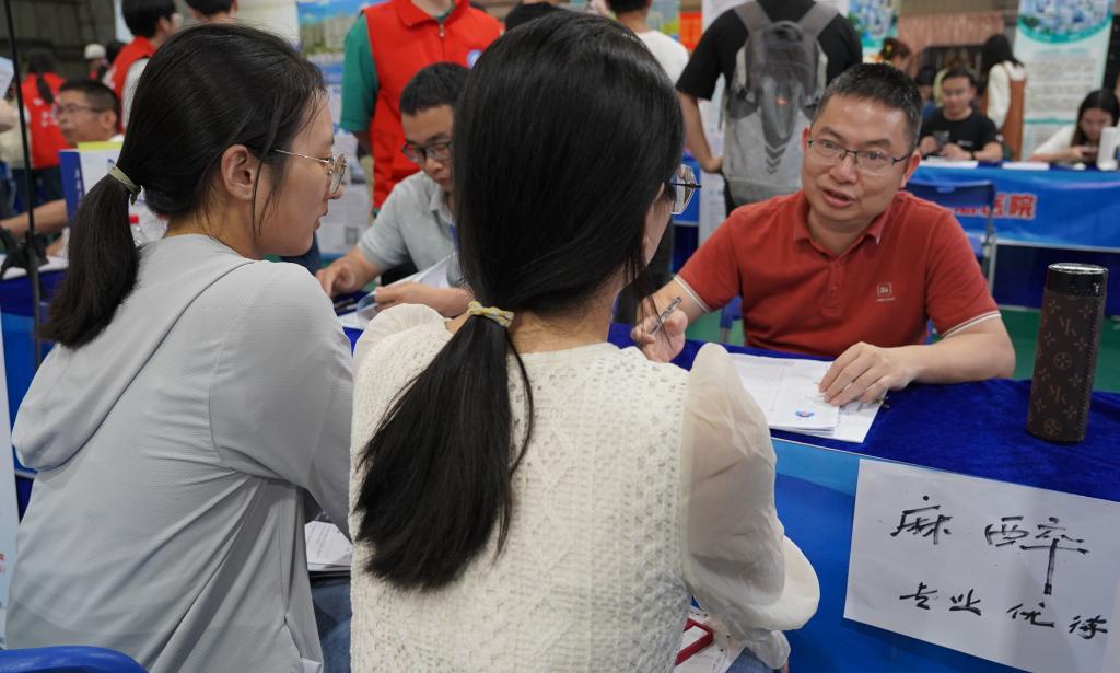 现场可见,来自校内外的毕业生们认真查看招聘企业及岗位,积极投递简历,并与招聘方进行深入沟通交流。