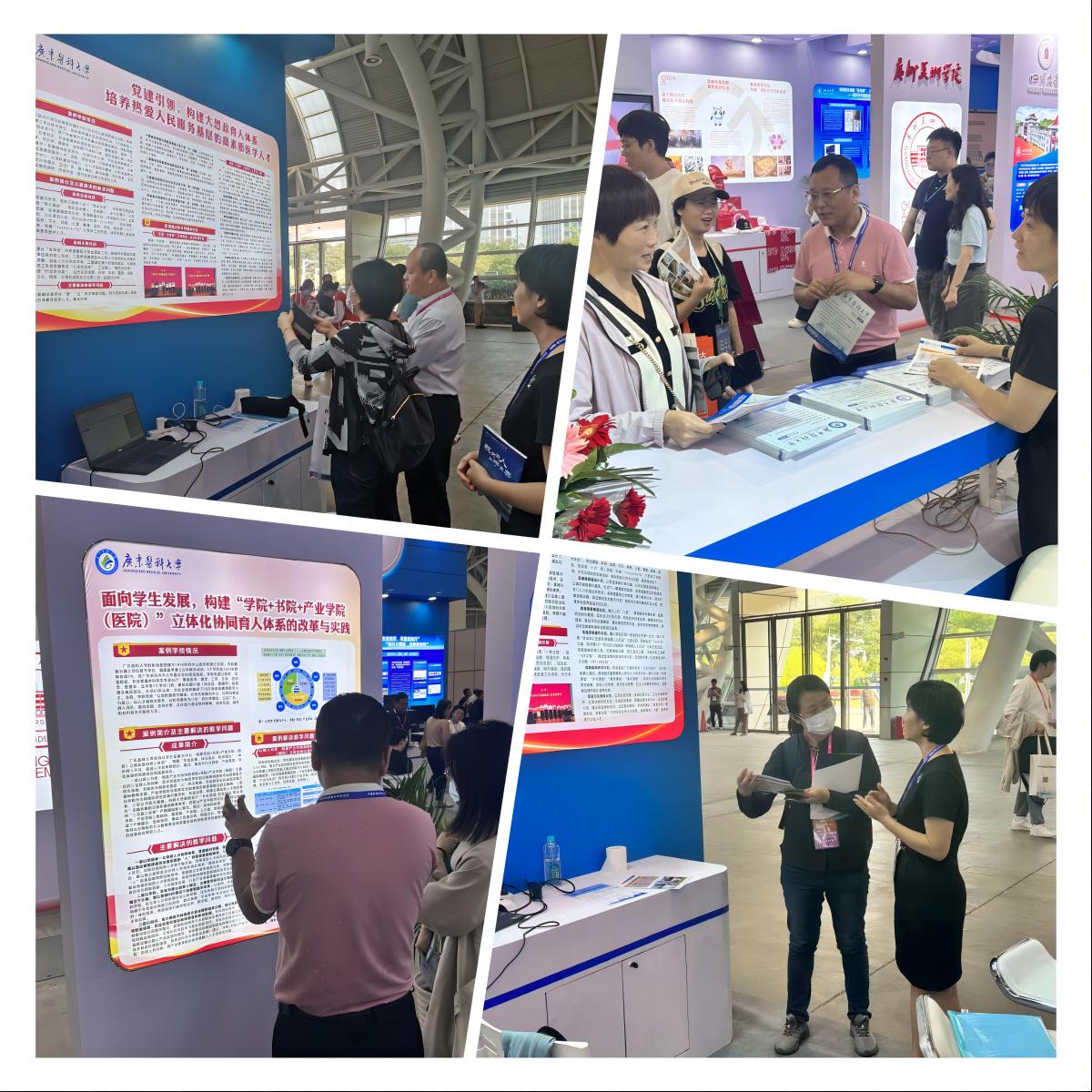 在成果展专区,ac米兰采用图文并茂、视频播放等的方式,全方位展现了学校在高质量人才培养等方面取得的特色亮点,一是党建引领,构建大思政育人体系,培养热爱人民服务基层的高素质医学人才,二是面向学生发展,构建“学院+书院+产业学院(医院)”立体化协同育人体系的改革与实践。展览期间,各高校、企业及相关领域从业人员参观ac米兰展位,认真观看展示内容和资料,并对ac米兰本科人才培养的特色给予了充分肯定。展出内容吸引了众多参会人员到展位进行深入交流,搭建了一个良好的交流合作平台。