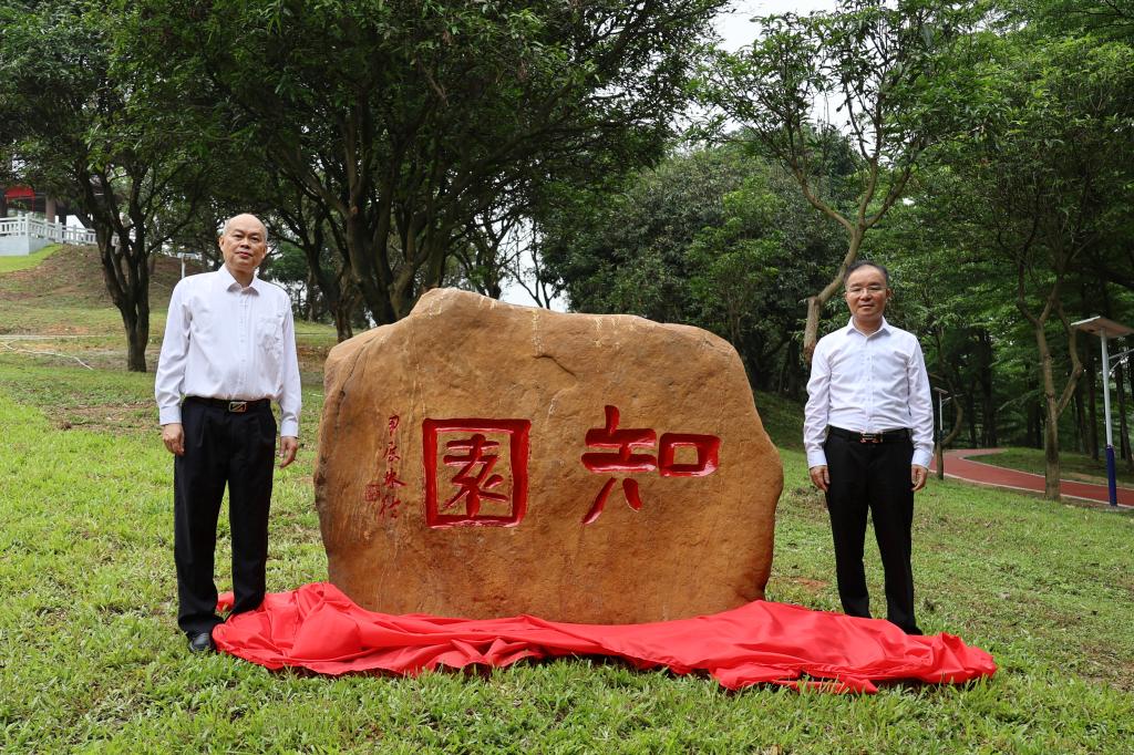 5月23日,值此ac米兰官网中文网站建校66周年之际,学校举行“知园”开园揭幕和“求真亭”揭牌仪式。学校党委书记校长卢景辉与广东能润资产管理有限公司张能勇董事长共同为“知园”开园揭幕和“求真亭”揭牌。学校党委常委、副校长曾志嵘主持仪式。