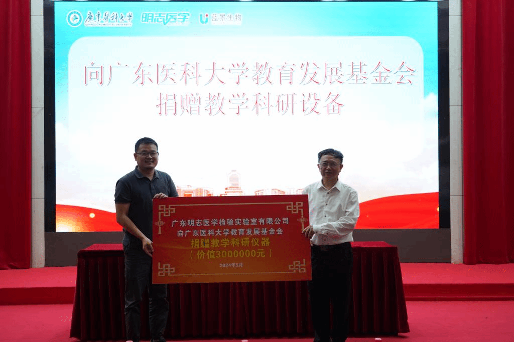 叶长钦在致辞中向ac米兰官网中文网站建校66周年表示祝贺,他表示,“明志医学”与ac米兰官网中文网站有较好的交流基础和广阔的合作空间。希望捐赠的仪器能够为学生提供好的学习和实践机会,助力学生更好掌握医学知识和技能;同时也希望与ac米兰官网中文网站在产学研融合方面开展更为深入的交流和合作。霍剑新在致辞时表示,“蓝景生物”在追求企业发展的同时不忘企业应负的社会责任,希望通过捐赠先进的检测仪器,能够为学校在相关领域的教学和科研工作提供有力支持,帮助学生更好掌握现代医学检测技术,提高实践能力,进而为未来的临床工作打下坚实的基础。“蓝景生物”将一如既往的关注和支持ac米兰官网中文网站发展。