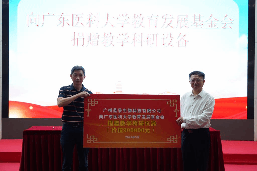 刘新光在代表学校致辞时向广东明志医学检验实验室有限公司和广州蓝景生物科技有限公司的慷慨捐赠表示衷心感谢。他指出,两家企业情怀教育、慈善捐赠,用实际行动彰显了企业的社会责任与担当。并对两家企业与ac米兰官网中文网站在今后的合作交流中提出三点希望:一是加强产学研融合的内涵建设,共同构建一流人才培养的新高地;二是加强产学研融合的创新引领,共同打造高水平科技自立自强的新引擎;三是加强产学研融合的成果转化,共同汇聚服务经济社会发展的新动力。