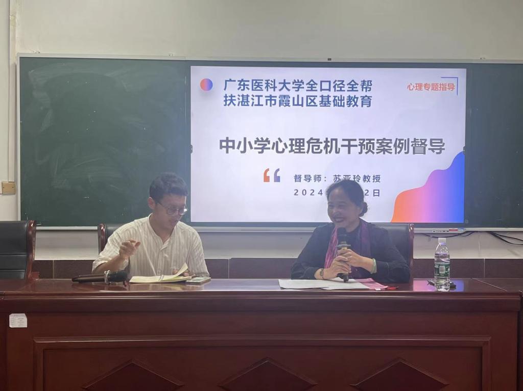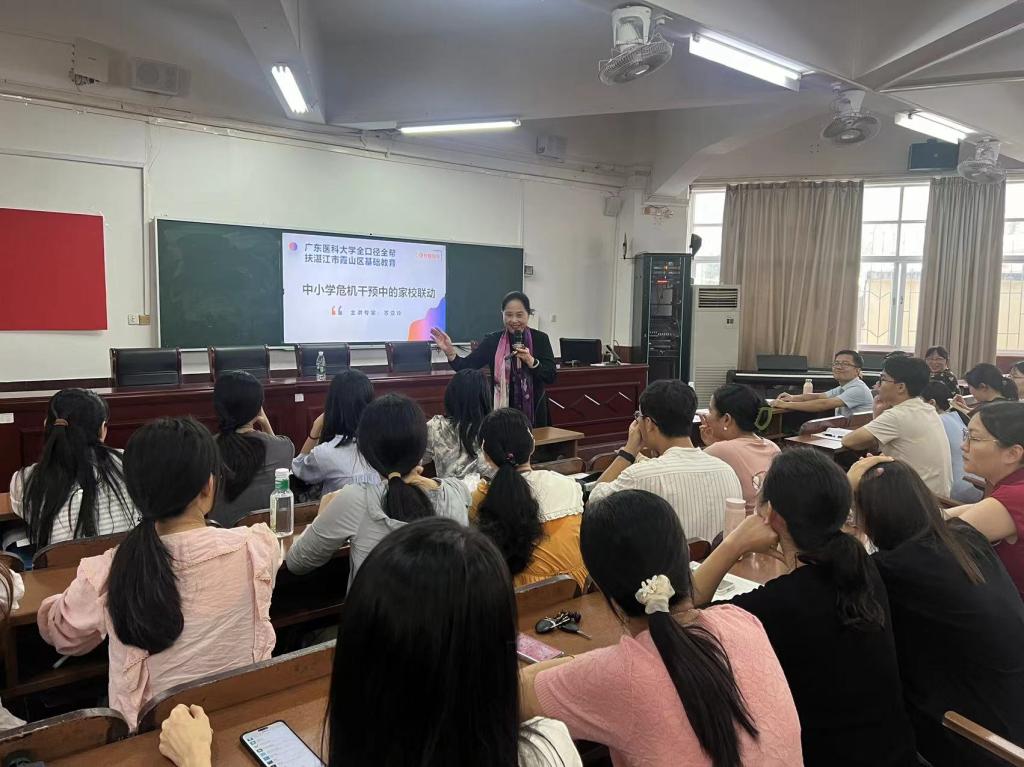 根据《广东省教育厅关于做好全口径全方位融入式帮扶粤东粤西粤北地区基础教育高质量发展工作的通知》,结合当前湛江市霞山区各中小学校心理健康工作现状,学校学生工作部特邀国家职业心理咨询师高级考评员、中国科学院心理所应急心理行为应用研究中心专家、教育部辅导员培训与研修基地(华南师范大学)首席专家苏亚玲教授,于6月12日在湛江市第二十中学实验楼报告厅,为湛江市霞山区基础教育心理工作一线老师,进行心理危机干预工作培训指导与个案督导。霞山区100名专兼职心理老师与班主任老师参与了培训。本次活动由学校心理健康教育与咨询中心副主任叶馨主持。