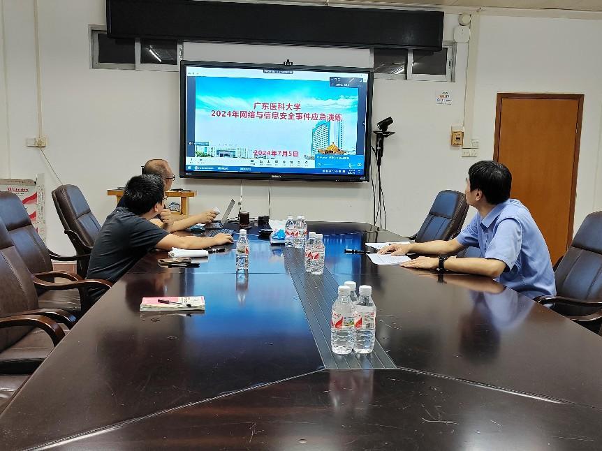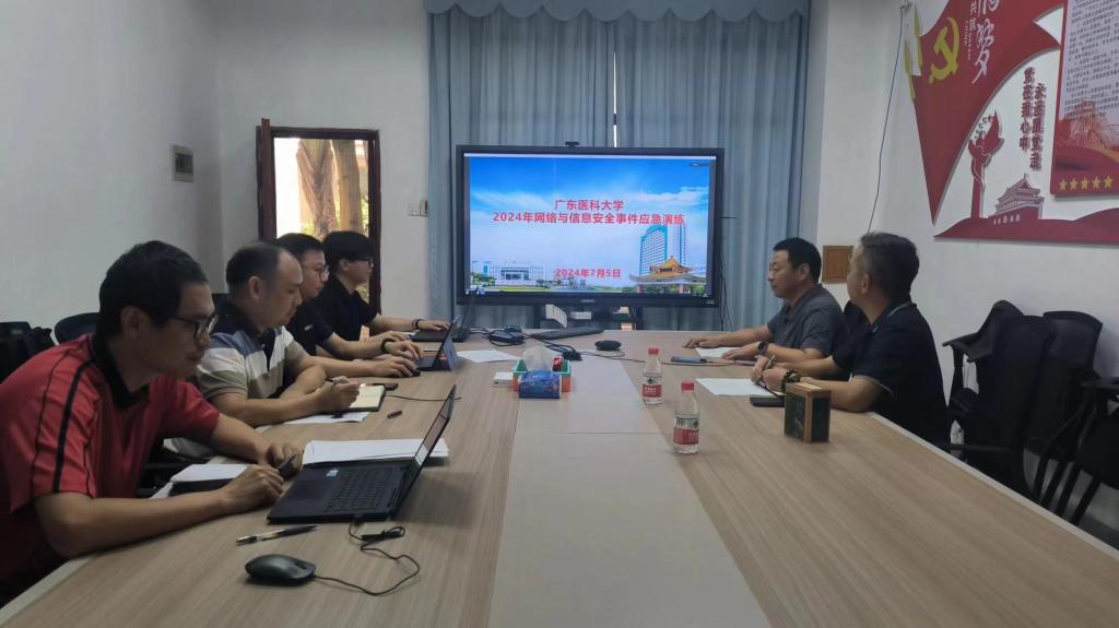 演练期间,人员组成包括网络与信息中心成员及相关处置技术人员。演练分工明确,共设置了应急演练指挥部、攻击组、监控组、防守组以及主持人角色,整个过程从主持人介绍演练背景,攻击组实施攻击,监控组发现安全攻击做先期处置,到防守组应急响应,最后由应急演练总指挥尚主任总结发言,演练进展顺利并圆满完成。