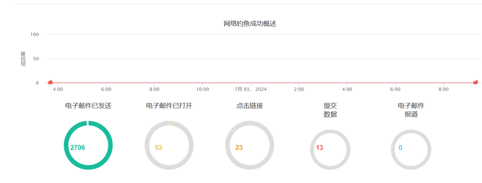 截至2024年7月4日,共计54位用户打开了钓鱼邮件,其中24位用户点击了邮件中的钓鱼链接,13位用户提交了账号密码信息。经分析,虽然此次钓鱼邮件的打开比率较低,但打开邮件后点击链接比率和提交账号信息比率较高,约为54.2%,还出现多次访问钓鱼网站且提交信息的情况。这反映出ac米兰师生对于钓鱼邮件的甄别能力和防范意识仍需进一步提高,也侧面反映出涉及个人利益相关的钓鱼邮件仍然是最有效的钓鱼手段。