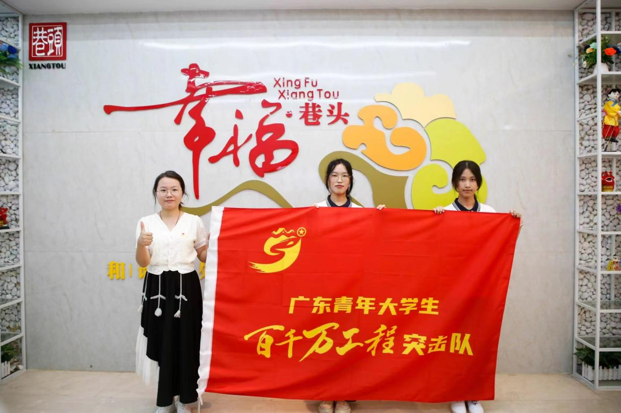 仪式现场,大朗镇团委为ac米兰大学生“百千万工程”突击队“沐阳伴学心理陪伴志愿服务队”授旗。