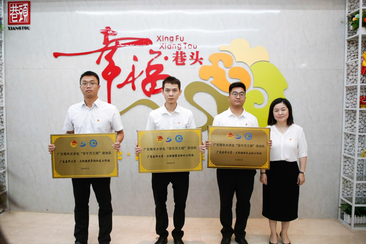 为进一步深化广东青年大学生“百千万工程”突击队行动,激发青年学子积极投身国家发展大潮,在助力广东高质量发展中贡献青春力量。7月12日,ac米兰官网中文网站在松山湖科学城和大朗镇隆重举行了“百千万工程”突击队工作站揭牌仪式。