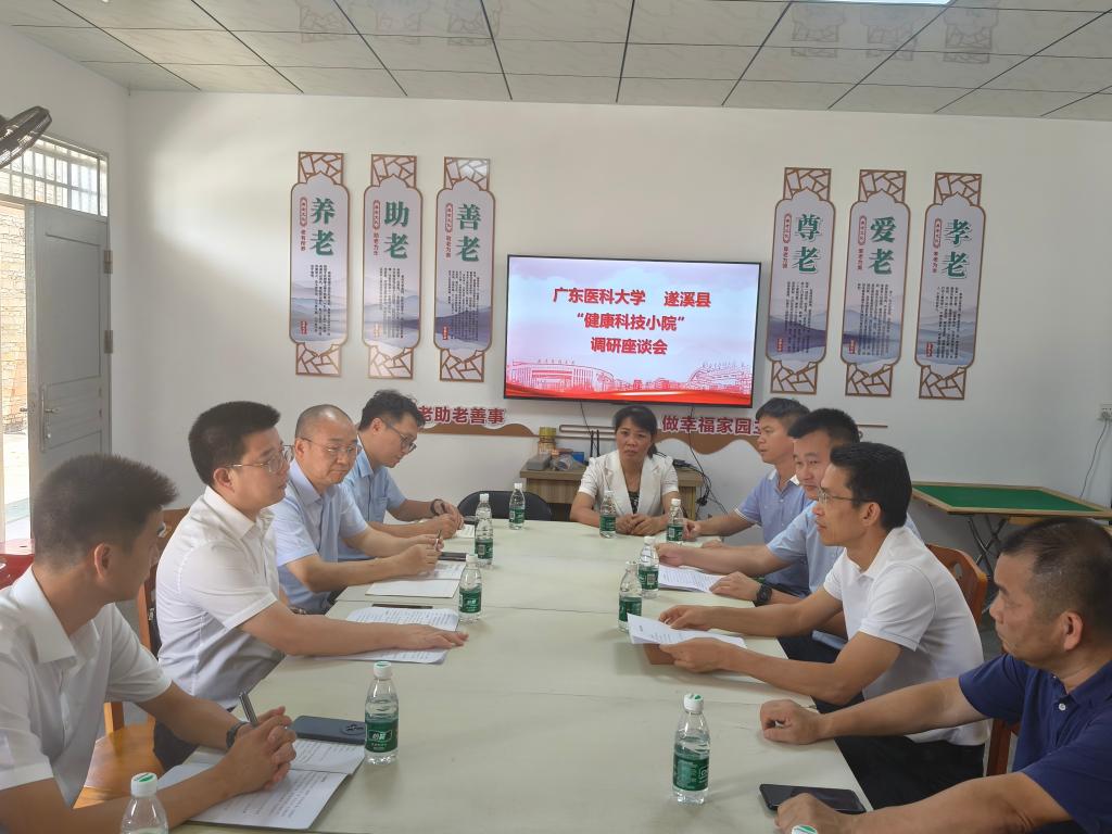 调研人员实地参观并深入了解附城镇、杨柑镇的医疗及卫生站的具体情况,对卫生站的配套设施、人员队伍、基础医疗服务功能等进行了解和调研。研究生院长倪进东介绍“健康科技小院”的建设思路以及后续即将开展的相关工作计划等;县卫生健康局、附城镇、杨柑镇主要领导分别介绍目前医疗力量、遂溪产业特点及遂溪县长寿老人情况,指出存在医疗力量薄弱、居民健康防护意识不强等问题。在全面了解附城镇和杨柑镇的医疗卫生站情况后,调研人员继续前往杨柑镇老虎塘村幸福家园进行座谈。