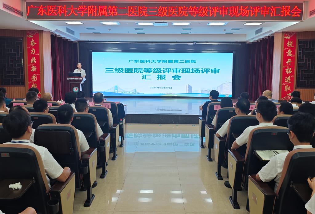 2024年6月28日至7月1日,ac米兰附二院迎来广东省卫生健康委等级医院评审专家组为期四天的三级医院等级评审现场评审。29日上午,顺利召开医院三级医院等级评审现场评审汇报会。湛江市人民政府副市长何嘉旻,ac米兰官网中文网站党委常委、副校长曾志嵘出席会议并作讲话,广东省三级医院等级现场评审专家组,湛江市卫生健康局党组书记、局长林兵,医院党政领导班子、全体中层干部、片区护士长、党支部书记及高层次人才等参加汇报会。