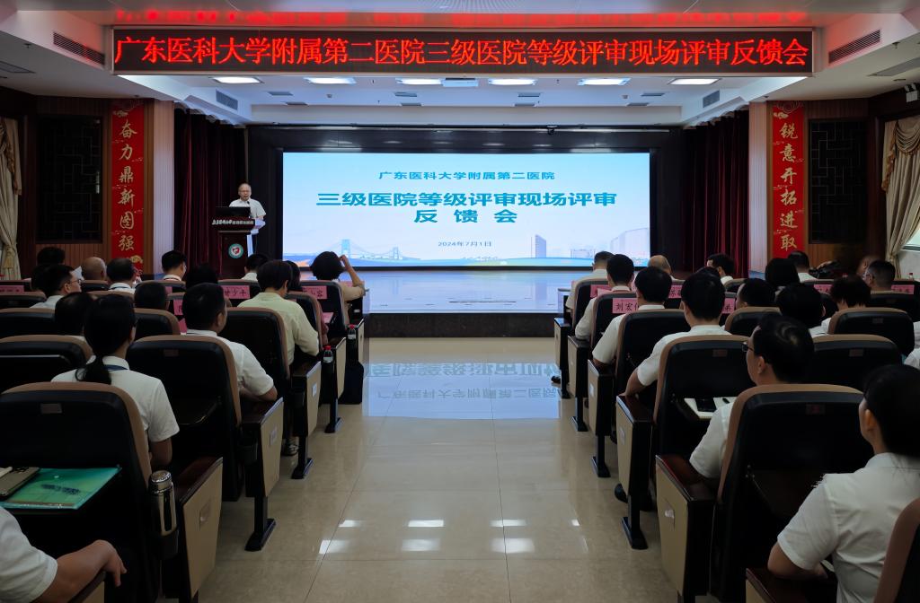 “ac米兰官网中文网站附属第二医院三级甲等综合医院现场评审顺利通过!”7月1日上午,广东省卫生健康委党组成员、副主任汪洪滨在反馈会上郑重宣布。经过三天高标准、严要求的评审检查,专家组对三级医院等级评审现场评审情况进行集中反馈,对取得的成绩给予充分肯定,对医院领导班子的高度重视和全院员工的有力执行予以高度评价,并分别就评审期间医院的工作亮点、存在问题及改进建议等方面作反馈报告,并针对评审过程中发现的不足之处提出了宝贵的意见与建议,为医院的事业发展和持续改进指明了方向。