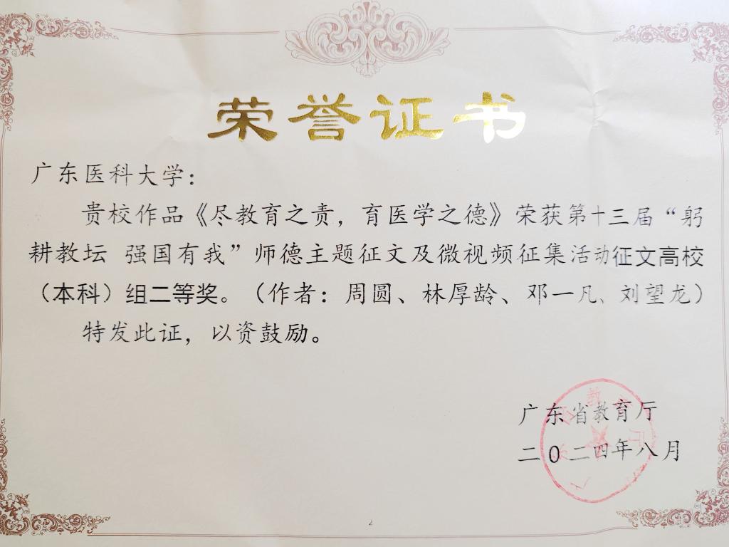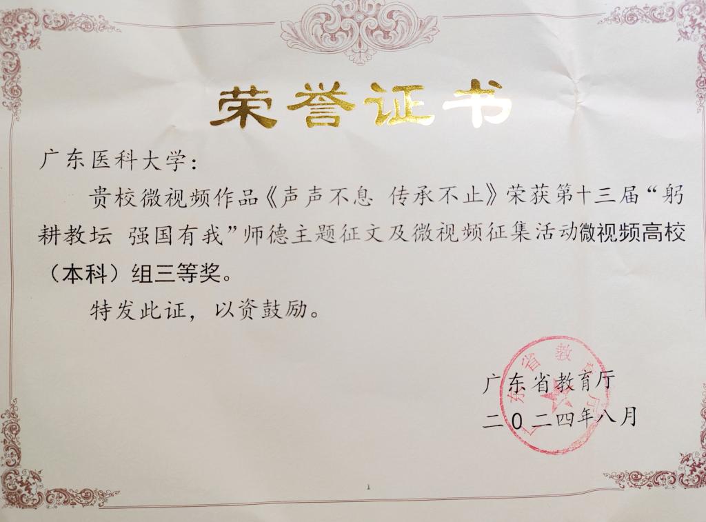 学校高度重视每年9月开展的师德建设主题教育月活动,精心部署,紧紧围绕主题,在全校范围内广泛深入开展活动。宣传部(教师工作部)认真组织,开展校内师德主题征文及微视频征集活动,鼓励各基层党委广大师生积极参与,层层筛选,做好作品推荐报送。其中征文高校(本科)组二等奖《尽教育之责,育医学之德》描写了基础医学院纳青青老师深耕医学教育心路历程。微视频高校(本科)组三等奖《声声不息 传承不止》则展示了ac米兰官网中文网站附属医院/第一临床医学院超声科徐晓红主任探索“大先生”的生动实践。
