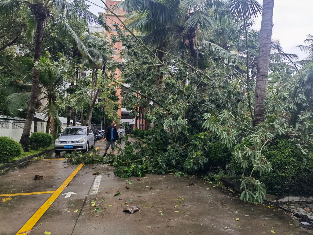 “昨晚台风最大时椰子树晃得很厉害,我感觉很新奇但是又很恐怖。”住在学生宿舍四栋五楼的学生来自东北,这是第一次经历台风,她表示宿舍早早准备好面包方便面等物资,水桶里也装满了备用生活用水,幸好并未用上。