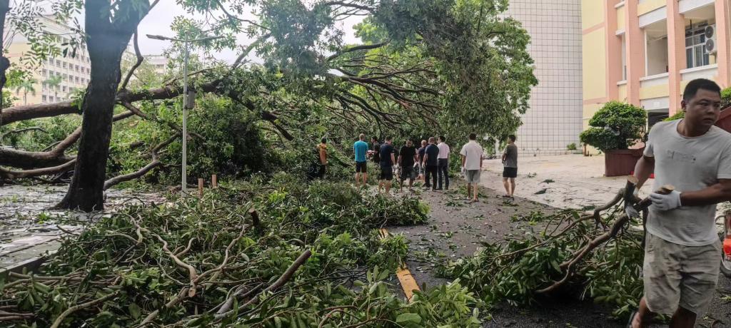9月6日夜间,超强台风“摩羯”在湛江登陆,7日一早,相关部门工作人员已经在开展道路障碍和树木的清理工作,为校园道路保通保畅。据了解,学校无人员受伤和重大财产损失。