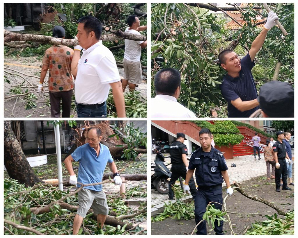 7日早晨,面对校园一片狼藉、严重影响师生出行和安全的情况,总务后勤部、保卫部和机关党委的党员干部第一时间设立警戒,引导师生避开危险区域。并率先爬上高处清理树枝,经过几个小时的奋战,校园内的主要道路已全面恢复畅通,校园秩序恢复正常。学校党委向献兵副书记到现场指导工作,黄达海副书记和邝卫红副校长对相关部门工作人员展现出的高度责任感和使命感,用实际行动保障师生生命财产安全给予充分肯定。