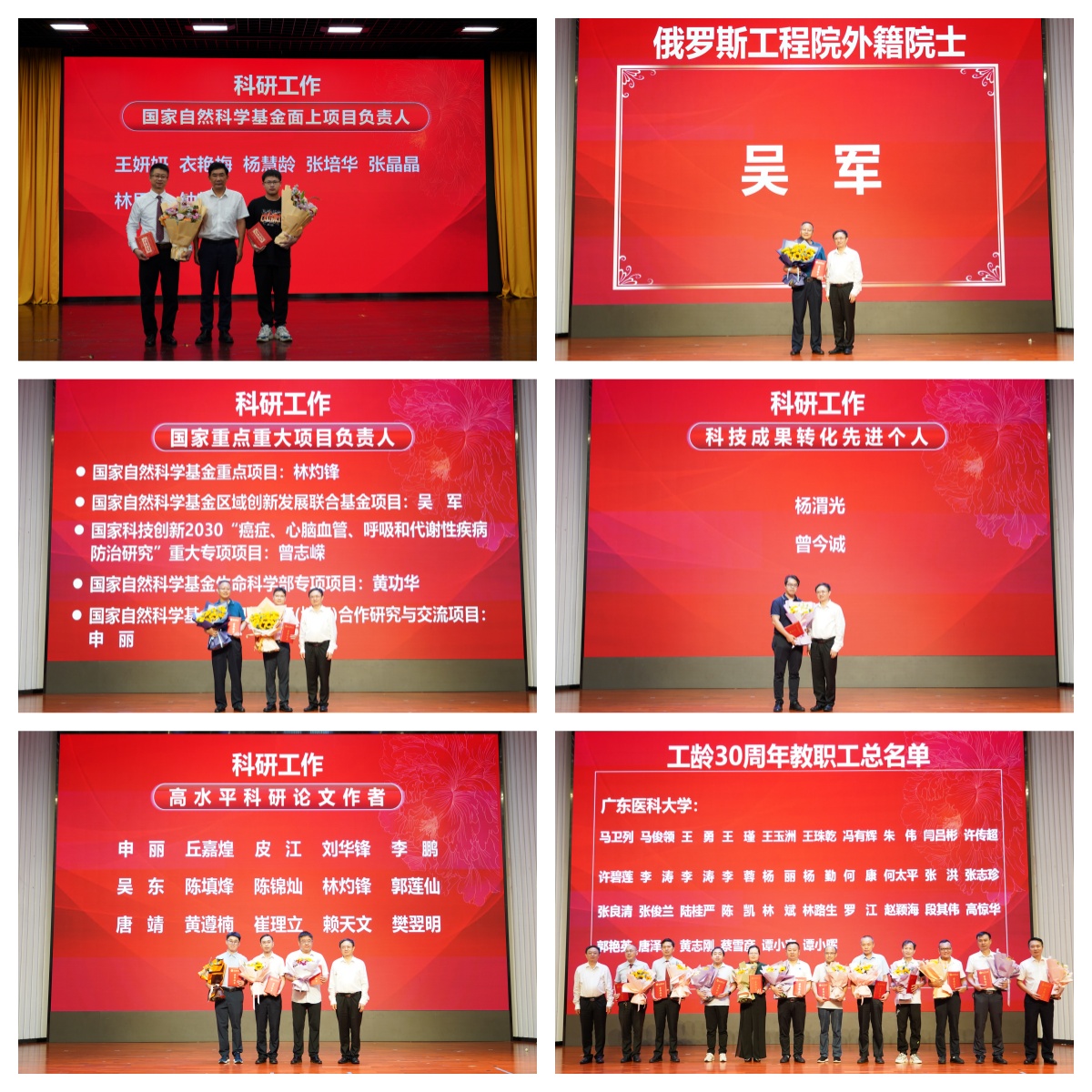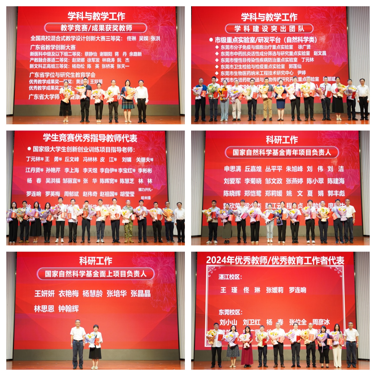 在表彰大会上新进教师庄严宣誓:“我志愿成为一名人民教师,忠诚党的教育事业,遵纪守法,严谨治学,教书育人,言传身教,立志立德,求真求精,艰苦奋斗,自强不息,做有理想信念、有道德情操、有扎实学识、有仁爱之心的好老师,为建成特色鲜明、同类先进、国内知名的高水平医科大学而努力奋斗。”