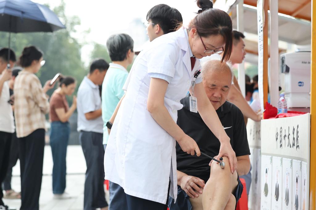 在中医互动体验区,除了能体验耳穴推拿,居民还能学习心康操,把健康知识带回家。(文、图/王丽君 初审/王丽君 复核/裴金涛 审发/杨海云)