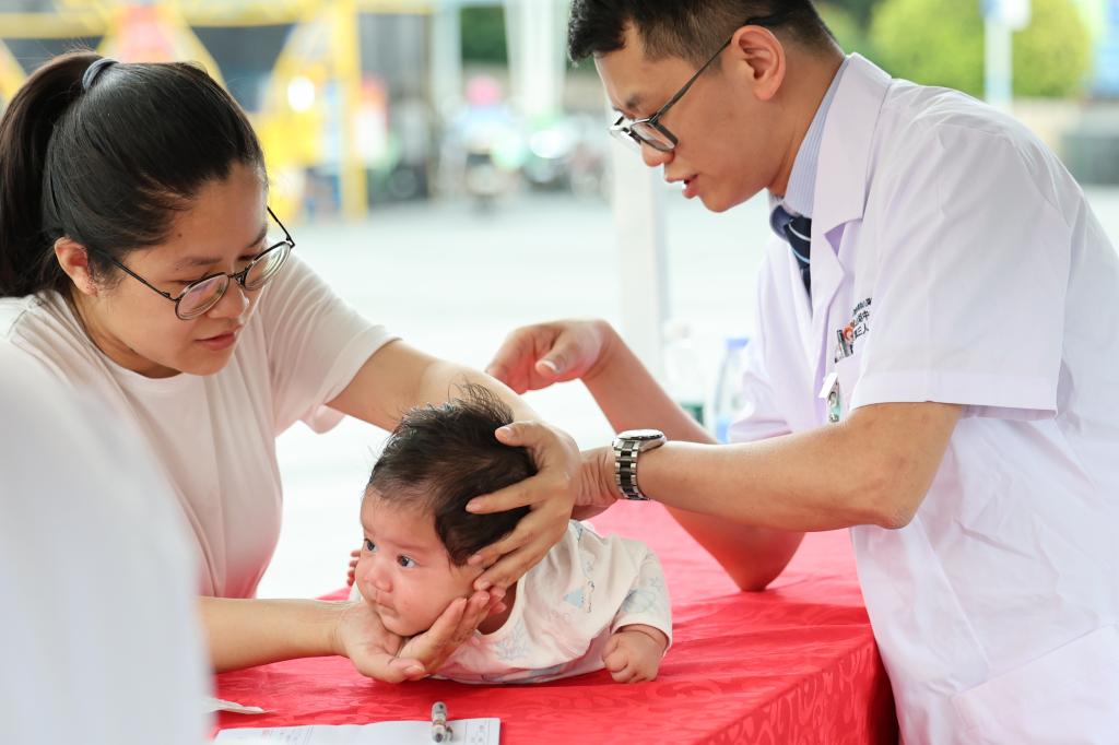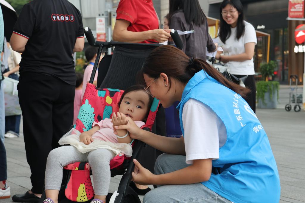 有的宝妈带着孩子来看诊,看完孩子以后自己也想看看,又担心看诊的时候孩子没有看护,在场的学生志愿者们主动出列,使出十八般武艺逗得孩子们哈哈大笑,宝妈们在不被打扰的情况下,给自己也做了一场高质量的诊疗。“医生们很专业、志愿者们很有爱,不用去医院就享受了高质量的医疗服务,这样的惠民活动真的太棒了!”问诊宝妈梁女士称赞道。