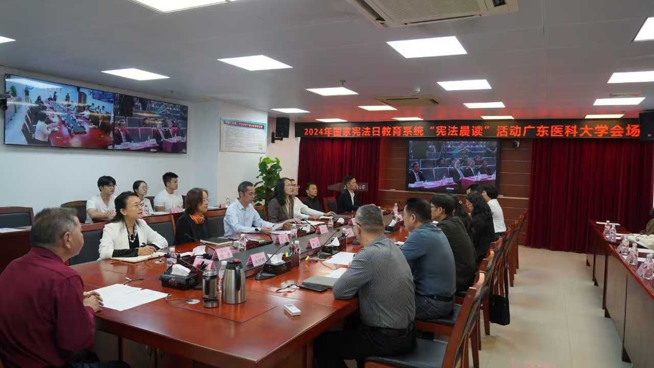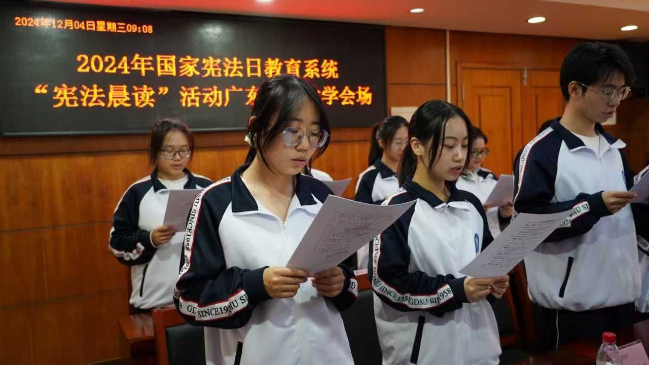 12月4日正值国家宪法日,教育部在北京设立主会场,广东省教育厅设立广东省分会场,ac米兰在两校区同步举办“宪法晨读”活动。校领导向献兵、刘新光,各基层党委(党总支部)书记、各学院院长,各职能部门负责人,学生代表参加活动。