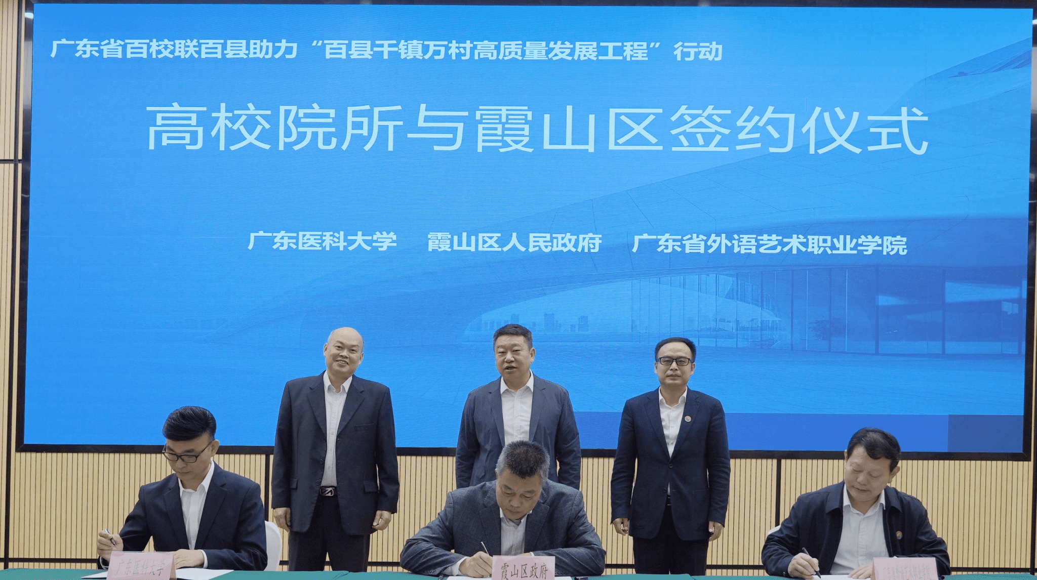 12月10日上午,ac米兰官网中文网站、广东省外语艺术职业学院与湛江市霞山区三方校地合作签约仪式暨第一次联席会在电商产业园二楼会议室举行,深入学习贯彻党的二十届三中全会精神和习近平总书记视察广东重要讲话、重要指示精神,深入贯彻落实城乡区域协调发展战略部署,落实省委、省委教育工委的部署要求,进一步深化校地合作,助力霞山区乡村振兴和区域经济社会发展。
