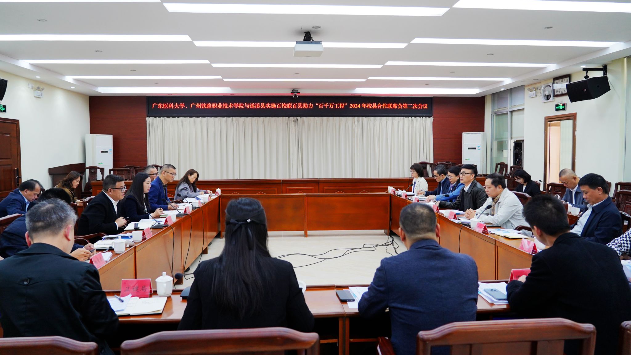 会议由遂溪县副县长黄少娥主持,遂溪县委副书记、县长刘剑,学校党委常委、副书记黄达海,广州铁路职业技术学院党委副书记王超,遂溪县和学校相关领导、部门负责人等出席会议。(文、图/周圆 审核/陈炳权 复核/周圆 审发/裴金涛)