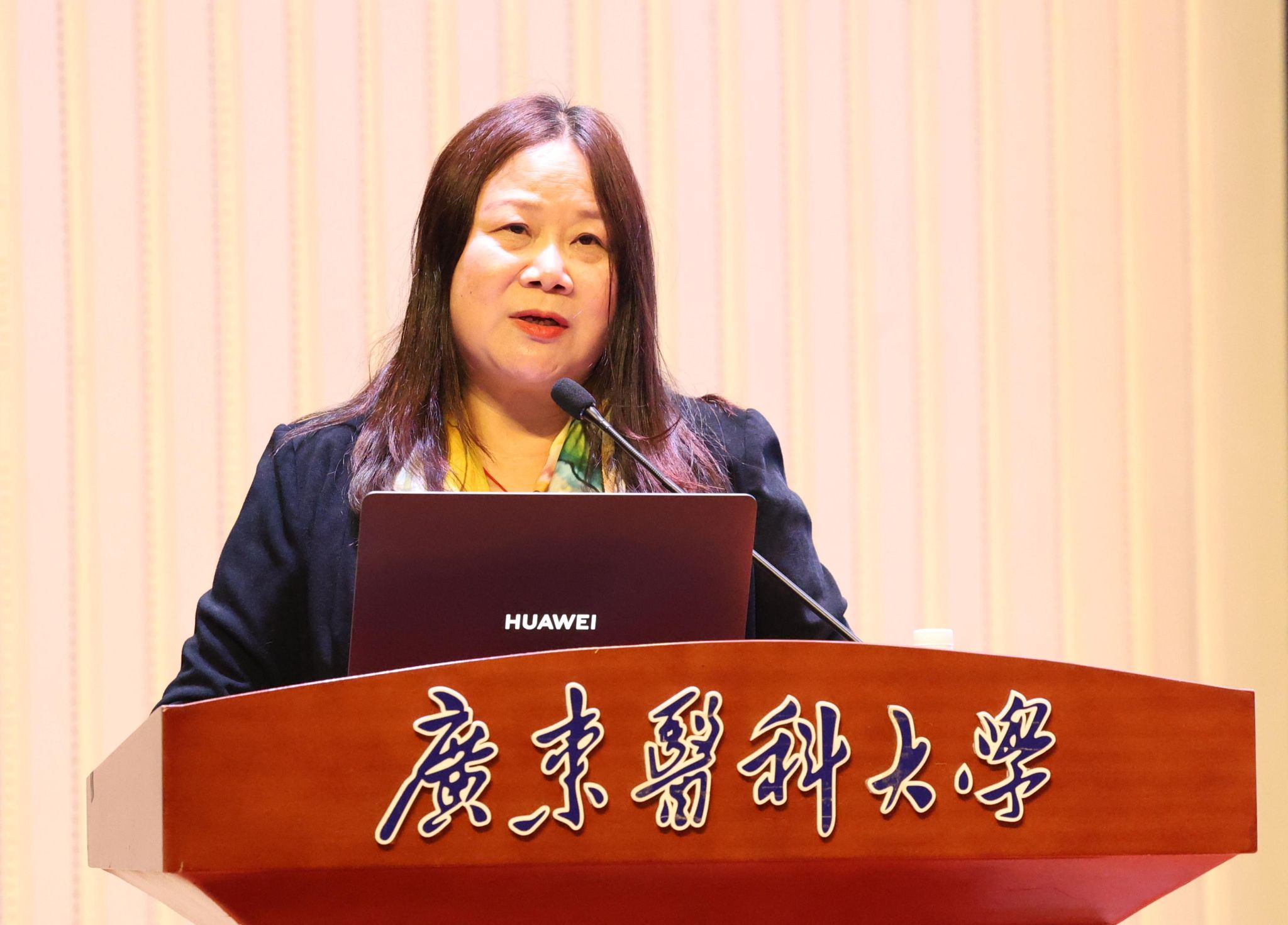 黄达海在会上高度赞扬了徐晓红教授的先进事迹,自1993年起,徐晓红教授扎根粤西大地,在临床一线医学影像学领域潜心耕耘三十余年,始终坚守“医必至专,师必至仁”的信念。她不仅是医学影像学专业的学科带头人,还是国家级特色专业及省级一流专业建设点的核心推动者。在她的引领下,医学影像学专业屡获殊荣,团队所教授的医学影像超声诊断学课程成功获批广东省一流课程及国家一流本科课程。徐晓红教授以德育人,将思政内容、人文关怀融入到临床教学中,培养了一批批医术精湛、医德高尚的人民健康守护者。