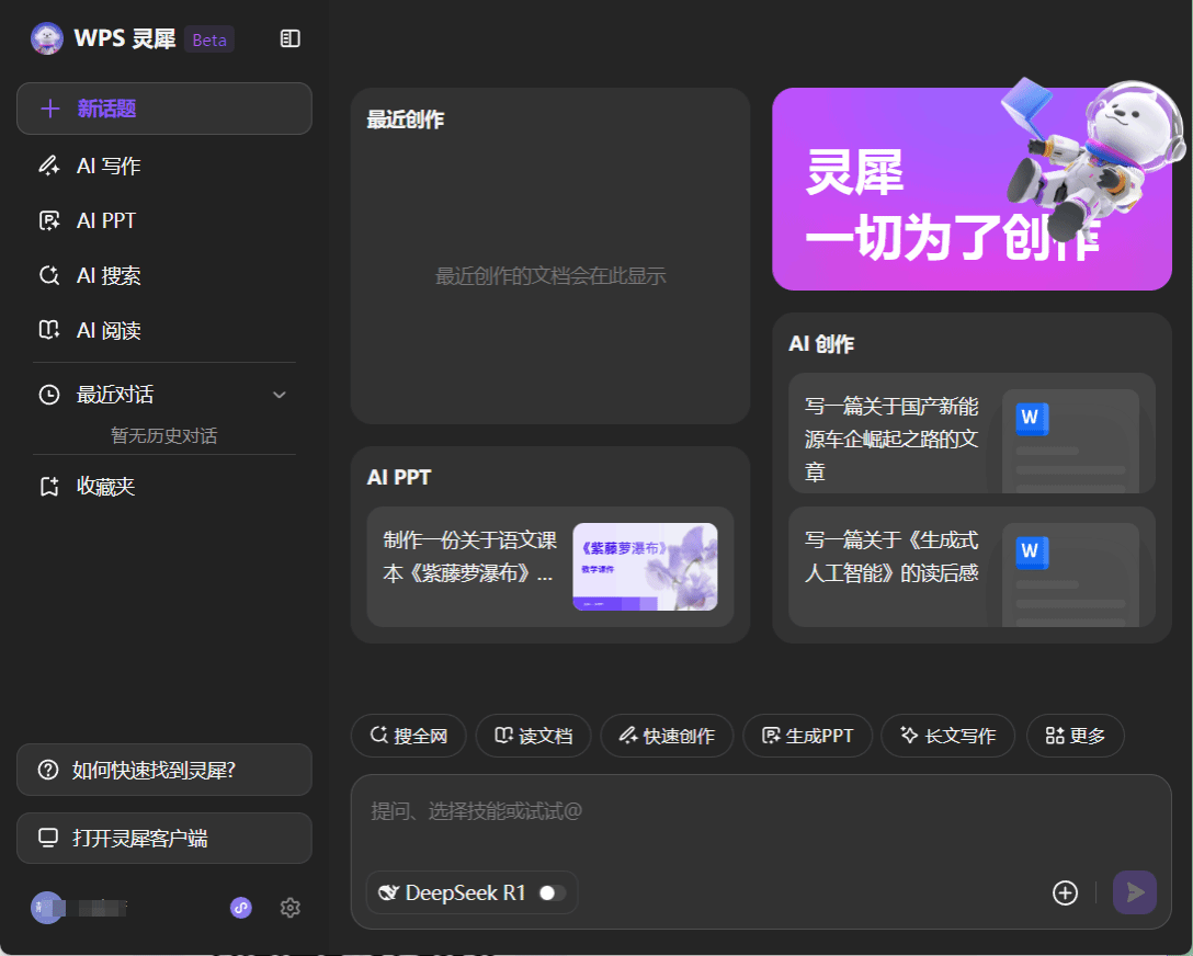 引入部署的WPS灵犀AI办公系统深度集成DeepSeek-R1大模型,构建起多维智能辅助体系:学术创作模块通过关键词智能解析,可快速生成符合SCI格式的论文框架及教学案例模板,百余种专业模板库覆盖医学教案、病案报告等场景;信息检索中枢实现10秒内聚合PubMed等权威数据库资源;文献解析引擎突破性支持CT影像报告与文本数据协同分析,30秒完成200页外文文献的核心结论提取;数据处理平台使用AI 数据分析可让相关数据一键转化为多种医学动态图表,助力科研与学术创新。