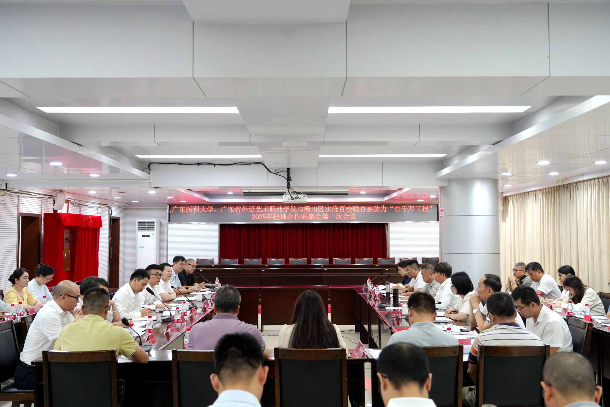 为深入贯彻落实广东省“百县千镇万村高质量发展工程”部署,深化校地、校校合作协同,5月28日晚,ac米兰官网中文网站、广东省外语艺术职业学院与霞山区政府联合召开“双百行动”2025年校地合作第一次联席会议,会议全面总结了上半年取得的阶段性成果,共商下一阶段重点任务。校地三方及相关单位负责同志参加会议。