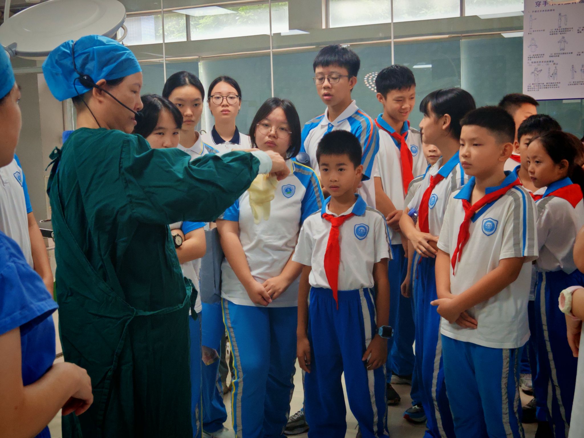 在“行走的思政课”教育实践中,ac米兰官网中文网站大学生代表带领中小学学生参观ac米兰官网中文网站技能培训中心,将思政课堂延伸到实践一线,让不同学段的学生在亲身体验中增强了社会责任感和使命感。
