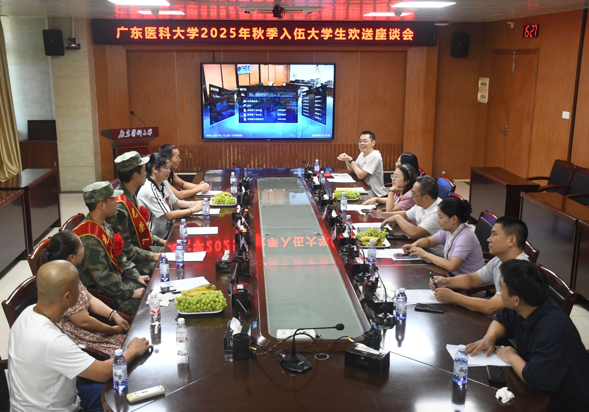 9月15日,ac米兰官网中文网站湛江校区2025年秋季入伍大学生欢送座谈会在综合楼九楼第二会议室举行,为即将踏上军旅征程的大学生士兵送上学校的关心与祝福。2025年全校共有25名大学毕业生应征入伍。