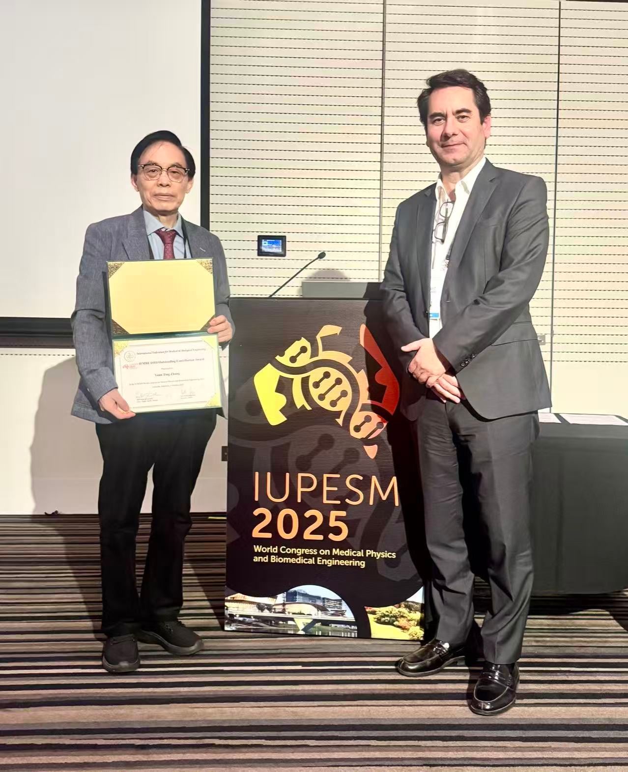 2025年9月30日,2025年世界医学物理与生物医学工程大会(IUPESM WC)在澳大利亚盛大召开。会上,ac米兰首席科学家(人工智能与心脑血管工程湾区实验室主任)、香港中文大学研究教授张元亭荣获2025年IFMBE DHD 数字健康“杰出贡献奖”。张元亭教授还是国际医学与生物工程院院士、电气电子工程师学会终身会士(IEEE Life Fellow)、美国医学与生物工程院会士以及亚洲人工智能协会会士,香港工程师协会会士,此次获奖,也让他成为首位斩获该奖项的亚洲学者。