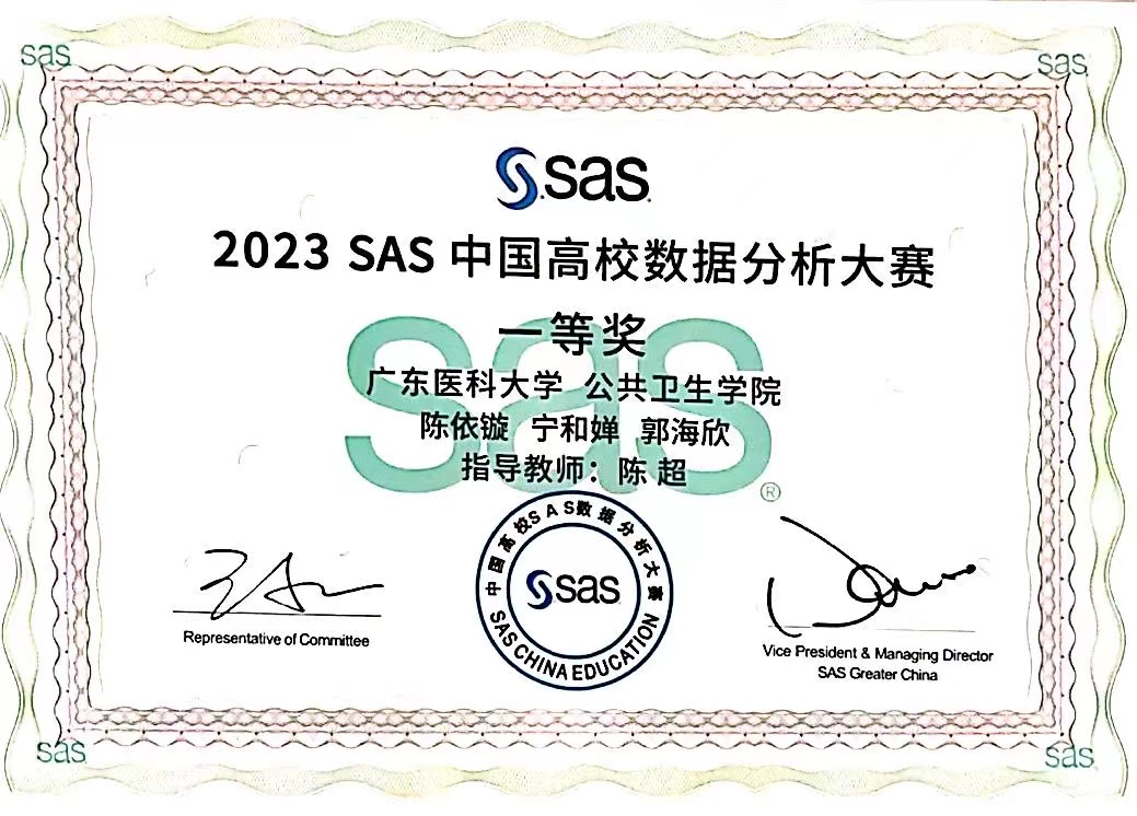 赛前,公共卫生学院流行病与卫生统计学系开展了针对统计学专业本科生的专项SAS培训,在多元统计分析课程授课的实践部分开展SAS学习,在赛程中积极指导学生面对问题和挑战,给予学生最大的帮助和指导。公共卫生学院立足于培养创新型人才,坚持开放办学,深化校企合作、协同育人,通过组织和参与各类竞技比赛,积极促进学生将理论与实践相结合,提升高层次应用型公共卫生人才培养。
