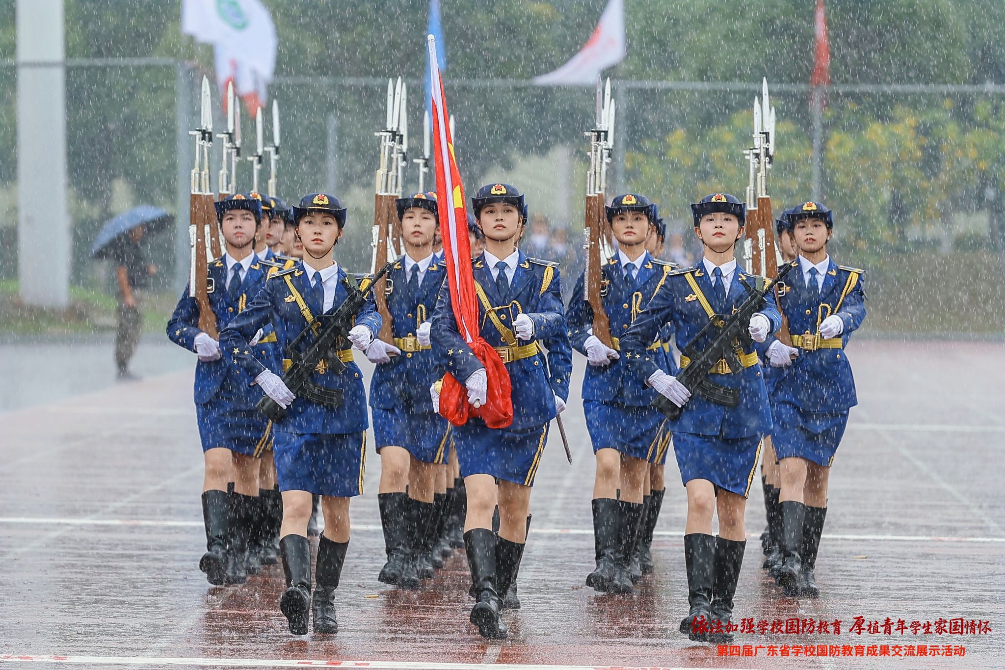 近年来,武装部紧紧围绕立德树人根本任务,以国旗护卫队等为载体,系统构建“旗帜引领·四维铸魂”国防教育模式,通过行走实践筑基、云端播火传薪、志愿浸润润心、星火燎原聚力四大路径,系统提升育人实效。该模式注重将训练实践与价值引领相结合,通过创新育人机制、深化实践内涵,全面提升学生的军事素养和综合能力。该模式的成效不仅体现在赛场上,更体现在服务国家和社会需要的实际行动中。6月下旬广东怀集洪灾告急,面对怀集、榕江的严峻灾情,由武装部培育的“旗帜飘扬”志愿服务队47名师生主动请缨星夜驰援,在当地武装部指挥下,队员们顶着烈日高温,在怀集多个严重淤塞点展开高强度清淤作业,累计清理淤泥超300吨,有力保障了核心区域交通命脉的畅通。怀集战斗尚未完全结束,得知贵州榕江又遭遇“百年一遇”洪灾。7月2日,17名队员(含6名女队员)主动请缨,火速转战。在机械无法进入的榕江背街小巷,队员们无畏齐膝深的恶臭淤泥和堆积如山的垃圾,仅凭简易工具和双手持续清障,6名女队员更是巾帼不让须眉,与男队员并肩鏖战,最终成功打通三条关键巷道和县城汽车站,以实际行动诠释了“服务国家所需、响应人民所呼”的建队宗旨,彰显了新时代青年的责任担当和家国情怀。