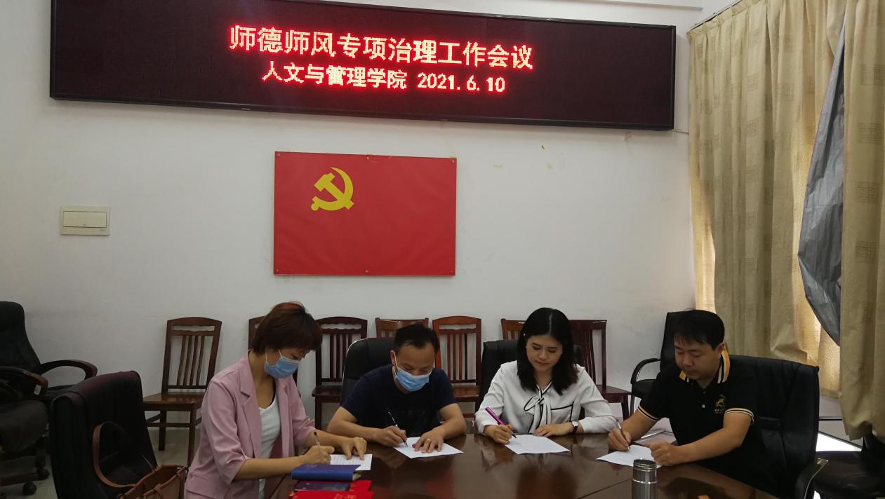 “百年大计,教育为本”,教育的关键在教师。为进一步加强学院师德师风建设工作,全面提升全体教师思想政治素质和职业道德水平,6月10日下午,人文与管理学院通过线上线下结合的方式召开师德师风专项治理工作会议。全体教职工参加了本次会议。