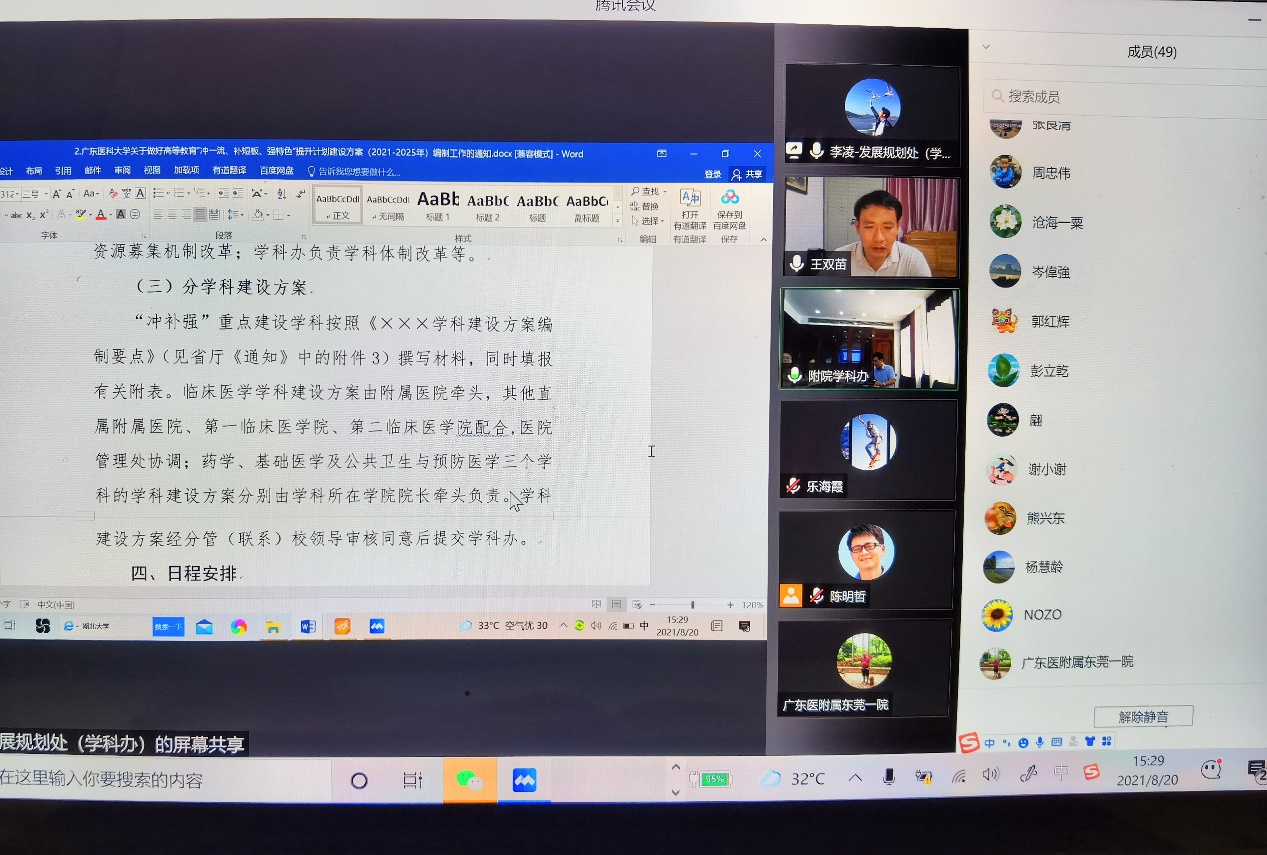 会上,发展规划处副处长(学科建设办公室副主任)李凌详细解读了《ac米兰官网中文网站关于做好高等教育“冲一流、补短板、强特色”提升计划建设方案(2021-2025年)编制工作的通知》内容,与会人员对新一轮“冲补强”建设方案编制工作进行了提问与讨论。