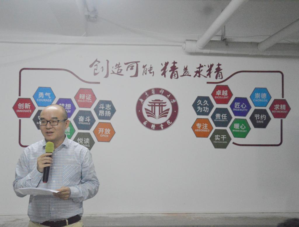 随后,丁喜生院长寄语学生团的干部们,介绍了求精书院的发展情况,阐述了书院的理念,希望他们在书院发展策略上“思考有深度”,深入调研,大胆设想,在尝试碰撞完善书院与学院的融合机制,同时努力拓展视野,“思维有广度”,多角度思考书院的发展,多维度思考书院规划的实施路径,做融合,做共性,实现“思路有系统”,不断升华书院“为梦想创造可能,为卓越精益求精”的理念,做到“思想有高度”,服务育人总目标。