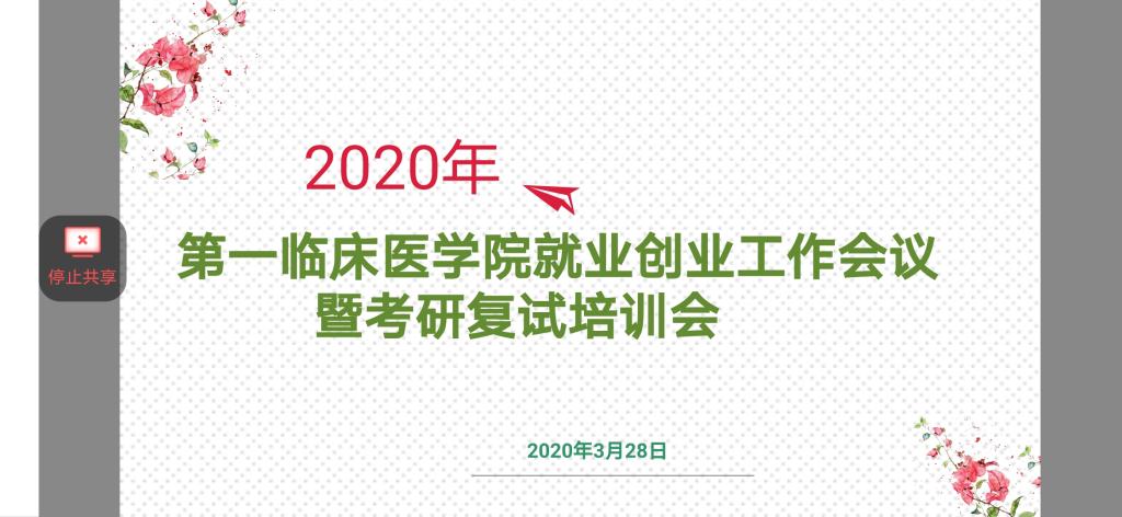为更好地帮助毕业生的升学和就业,助力学院考研学子顺利通过复试,3月28日,第一临床医学院开展线上就业创业工作会议暨考研复试培训会。研究生学院院长唐焕文、第一临床医学院党委书记黄然、院长张良清、副书记陈晓光、ac米兰附属医院培训部部长李书安、姚岚老师,大内科主任周宇,大外科主任柳建军、妇产科主任张颖、儿科主任黄宇戈、2018届学生梁晓杰以及近300名应届考研学子参与会议。会议由第一临床医学院2015级辅导员蔡晓颖主持。