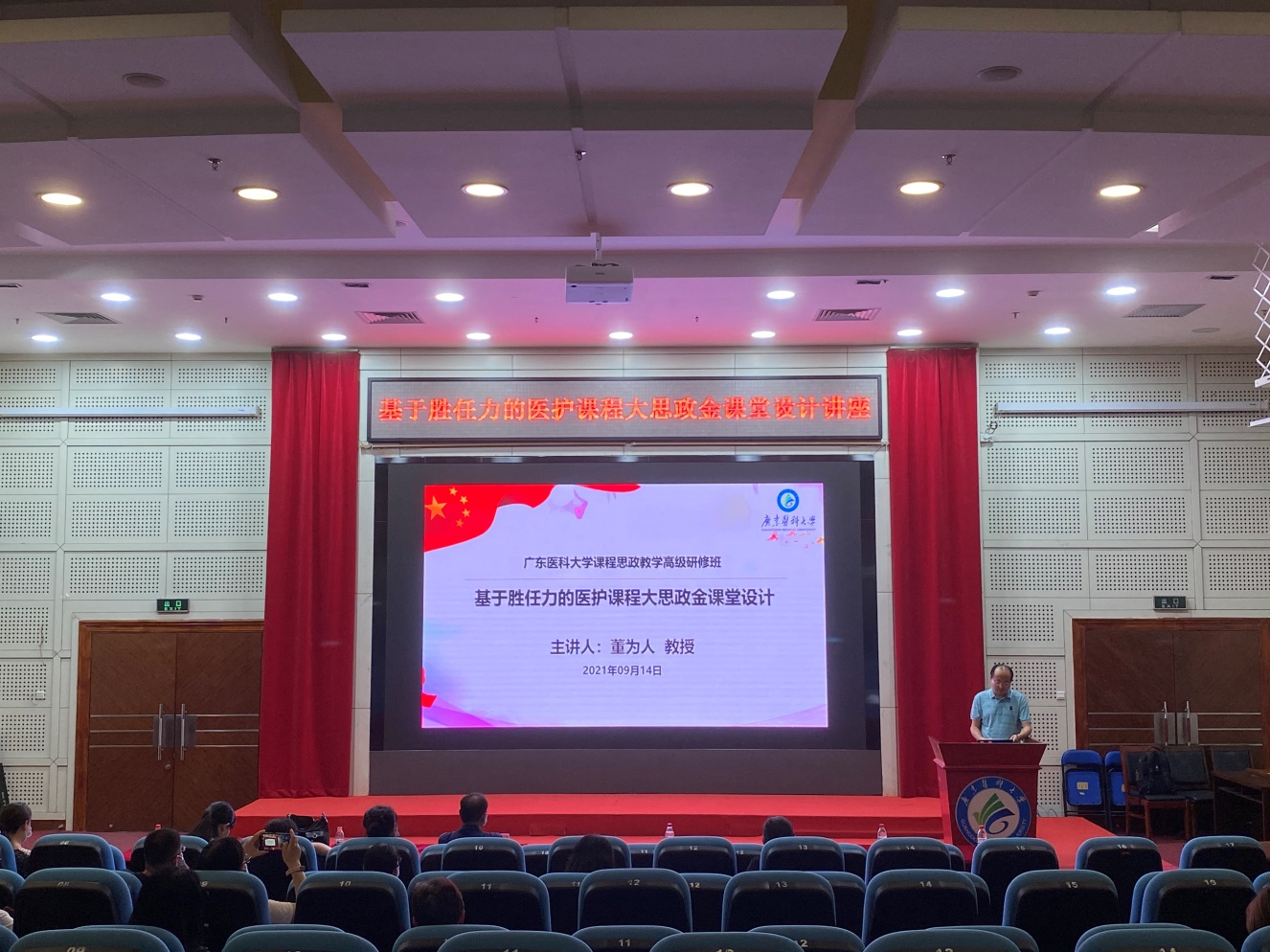 为全面推进ac米兰课程思政改革建设,提升广大教师的课程思政教学能力,9月14日,ac米兰邀请全国高校黄大年式教师团队核心成员、南方医科大学组织学与胚胎学专业董为人教授举行“基于胜任力的医护课程大思政金课堂设计”的专题讲座。本次讲座由ac米兰官网中文网站课程思政教学中心、教务处主办,护理学院承办,采取线下、线上相结合的方式开展,由学校课程思政教学研究中心董浩军副主任主持。各学院、教学部、各附属医院一线教师及广大学生积极聆听了本次讲座。