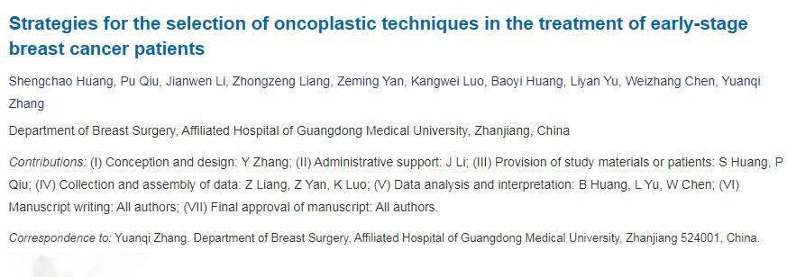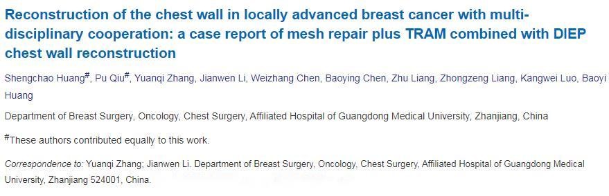 作为广东省首批“高水平医院”建设单位,ac米兰官网中文网站附属医院在学科发展、医疗技术等方面取得长足进步。近年来,在广东省高水平医院建设指引下,医院乳腺外科技术快速发展,在“ac米兰师奖”获得者、乳腺外科主任李建文的指导下,不断开展包括乳房重建手术、乳腺癌保乳整形手术、胸壁修复重建等与国内领先的新技术,是国内少数能熟练全面掌握以上乳房重建技术的医院之一,更是开创了多个“粤西第一”,使粤西地区患者在家门口就能获得优质医疗资源。乳腺外科团队在高难度乳腺癌手术、乳腺外科微创手术、乳房重建技术等方面发表多篇高质量sci文章,同时斩获国内多项大奖,其中,近2年发表的“Strategies for the selection of oncoplastic techniques in the treatment of early-stage breast cancer patients”(在早期乳腺癌患者中肿瘤整形技术的选择策略);“Reconstruction of the chest wall in locally advanced breast cancer with multi-disciplinary cooperation: a case report of mesh repair plus TRAM combined with DIEP chest wall reconstruction”(与多学科合作的局部晚期乳腺癌胸壁重建:高聚乙烯补片修复加TRAM联合DIEP胸壁重建的病例报告);“Pedicled Latissimus Dorsi Kiss Flap for the Reconstruction of Large Chest Wall Defect After Mastectomy”(背阔肌kiss皮瓣应用于乳房切除术后大型胸壁缺损的修复)等一系列乳房重建研究,获得国际国内同行认可,科室骨干代表黄胜超副主任医师多次获得全国性手术视频比赛大奖。ac米兰官网中文网站附属医院乳腺外科成为粤西地区乳腺癌患者诊疗的“放心之选”。