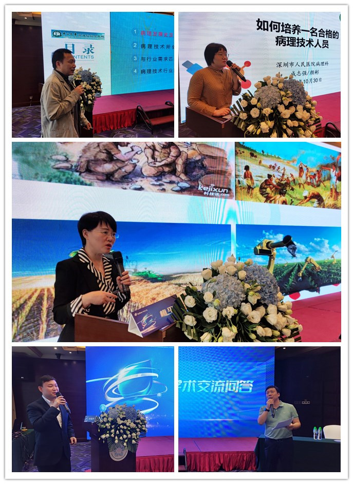中山大学孙逸仙纪念医院病理科侯景辉副主任技师主讲了《现代医院与病理技术的关系》,他指出:病理技术不断革新和持续发展为精准医疗提供了重要的依据,一个高水平的病理科的背后,一定有一支强大的病理技术人员在支撑。病理技术人员需具备一丝不苟的态度、终身学习的态度,精益求精和团结协作的精神。广东省人民医院病理科副主任梅平主任医师讲授了《病理质量管理与病理科管理》,她详细介绍了省人民医院在病理诊断和病理技术中的科学管理、精细化管理的内容,认为病理质量控制实现病理科规范化管理的关键一环。深圳市人民医院病理科颜彬博士围绕《如何培养一名合格的病例技术人员》为大家讲授了深圳市人民医院在病理技术临床规范化培训和病理技术本科实习教学实践方面的经验。她认为:病理乃医学之本,技术是病理之母。病理技术人员的规范化培训的组织和管理明显落后于其他专业,应结合实际工作并借鉴临床病理医师规范培训方案。中元汇吉生物技术股份有限公司病理试剂研发部部长朱俊轩博士讲授了《免疫治疗与病理诊断》。他分别介绍了肿瘤的发现与治疗手段、免疫治疗相关的诊断方法和公司的病理团队介绍。