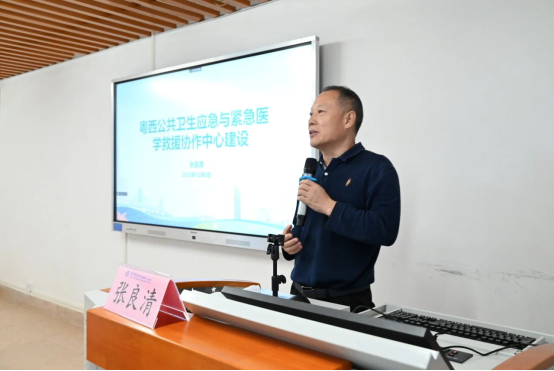 张良清教授作题为“粤西公共卫生应急与紧急医学救援协作中心建设”学术报告