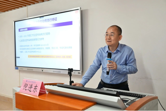 倪进东教授作题为“湛江地区法定传染病流行趋势及应急管理实验室建设”学术报告